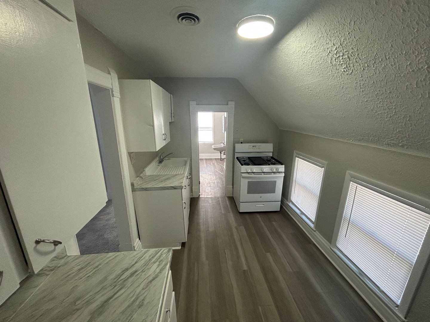 This 2nd-floor duplex has a private entryway with storage. New flooring and paint throughout, and newer kitchen counter tops. Walking distance to grocery options and bus lines. We take care of lawn mowing and snow removal! Water and garbage are included.